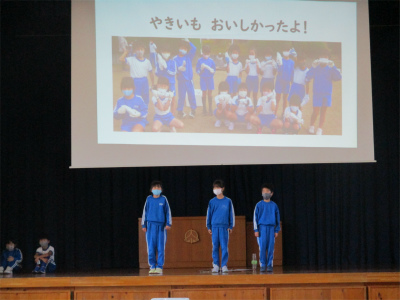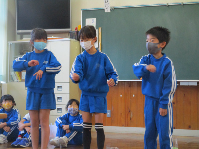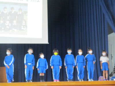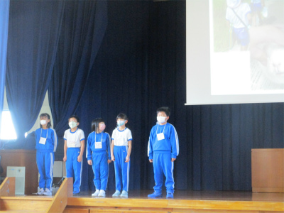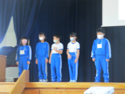 2年生の素晴らしいところは、5名の学級とは思えない堂々とした声です。はっきりと伝わってきます。明日も、5名とは思えない声量で伝えてくれることと期待しています。さて、4年生はどうでしょうか。