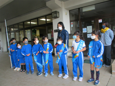 全員たすきがかけられなかったので、新しいたすき(緑色)を調達し、30日からみんなたすきをかけられるようになりました。1年生の皆さん、よろしくお願いします。