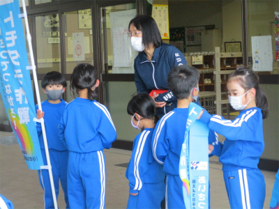 大きな声でしっかりとあいさつできました。また、あいさつ名人も決めなくてはならないので、どの子もしっかりとしたあいさつができていた友達を見極めています。なかなか1年生には、高いハードルのようです。