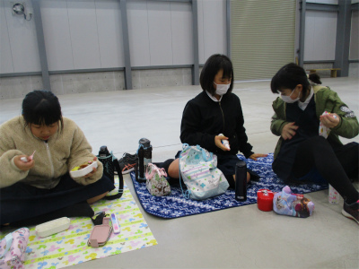 昼食会場は、大変広いのですが、寒い!床がコンクリートで冷たい!早々に、昼食を済ませ、あの先日のニュースで報道された武生公園の大観覧車(今年で最後)の見学に行きました。