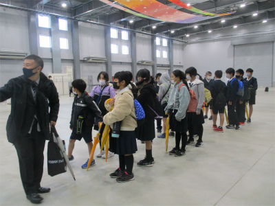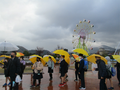 最後は、「きくりん」と一緒に記念撮影。午後3時には、予定よりも1時間早く学校に到着しました。