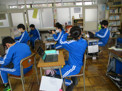 家庭科の授業です。感謝の気持ちを表す方法について、何をするとよいか意見交換中でした。(クロムブックのアプリを使って)1日1日を大切に過ごしてくださいね。