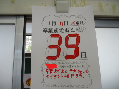 1月19日水曜日。6年生があと登校する日にちは39日となりました。