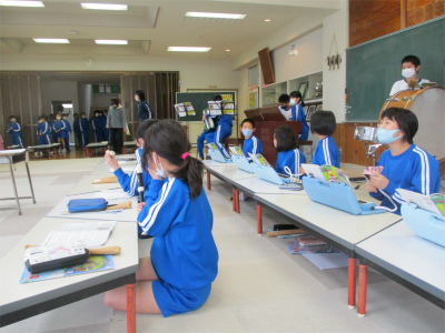 お客さんが入ってきました。まず入ってきたのは、1年生達です。興味津々です。