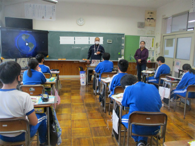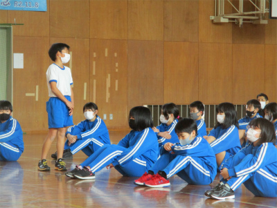 28日(金)に出される「真鯛の塩焼き」を意識して、正しい魚の食べ方を説明してくれました。その後、数問の「○×クイズ」を行いました。少し密になるようで心配しましたが、クイズに正解してうれしそうに飛び上がっている低学年の子ども達を見ていると温かい気持ちになります。