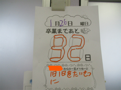 1月28日金曜日。今日の6年教室カウントダウンのカレンダーの日にちは「32日」と書かれていました。来週から2月に入ります。6年生の音楽の授業をのぞいてみました。「木星」という合奏曲を練習していました。
