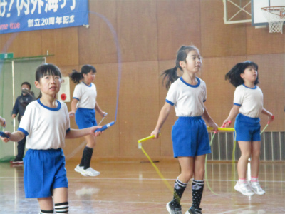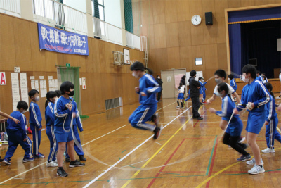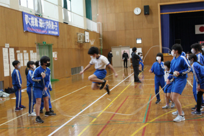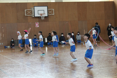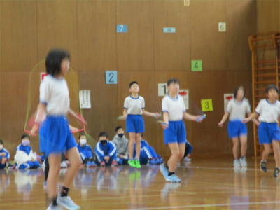 業間から4時間目にかけて「校内なわとび大会」が行われました。オミクロン株の爆発的な増加で、今年度は保護者の皆さんへの公開はなしと決めさせていただきました。楽しみにしていた皆さんには申し訳なく思います。おうちの方の応援はありませんでしたが、子ども達は一人一人自分の目当てに向かってチャレンジしていました。