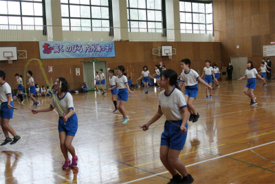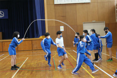 6年生は参加者全員が8分間を跳び続けるという快挙を達成しました。「自分が引っかかったら皆に迷惑がかかると思って、めちゃくちゃ緊張しました。」競技終了後、6年生が語っていました。さてさて、大縄跳びはどうでしょうか。