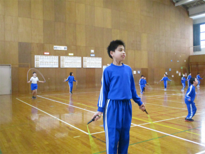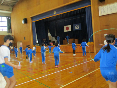 今日も、いつもどおりに(なわとび大会が終わろうと)朝は8分間持久とびから始まります。なわとび大会が終わったためか、「8分間跳びきろう」という気合いがなくなっている子も…。なわとび大会の終わりは、次の始まりです。6年生は、中学校に向けての始まりです。(なわとび大会はありませんが…)