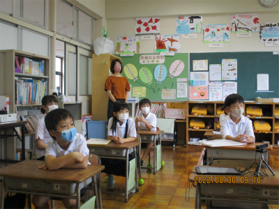 8月30日火曜日。本日より「内外海小学校令和4年度第2学期」が始まりました。連日、報道される新型コロナウイルス感染者数に、「無事に学校が始められるだろうか。」と不安になりましたが、今朝、子ども達の元気な姿を見てその不安が吹き飛びました。