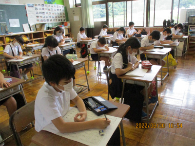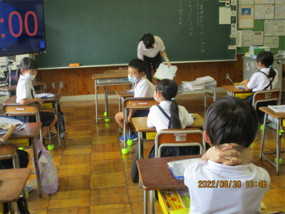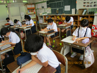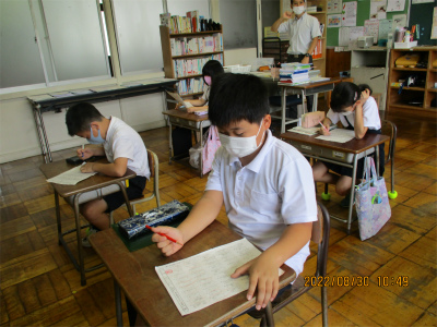 3年生と4年生は、夏休み明けのテスト中でした。「ああ、早く書かんと忘れる。」