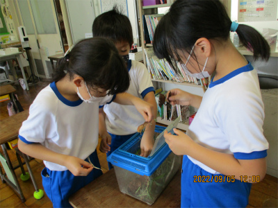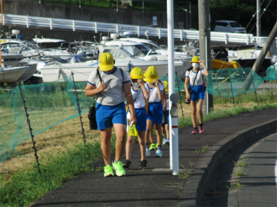 9月6日、火曜日。今日は、台風11号の影響を受け時折、突風が吹きます。強風の中を子ども達は、風に負けじと登校してきました。小さな1年生は、風に飛ばされないかと心配していました。なんのその、元気に歩いていました。