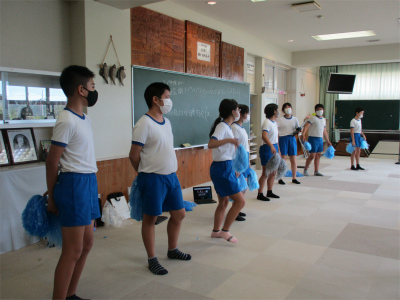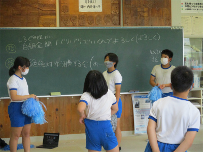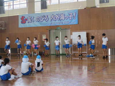 昨年度から始まった「よさこい」ですが、やはりは難しい振り付けが多くあるようです。がんばれ!本日、台風の暴風を考慮し、5時間目で全員下校となります。現在のところ、大きな影響は出ていません。ただし、台風の影響からか大変暑いです。暑さの中、頑張る内外海っ子です。