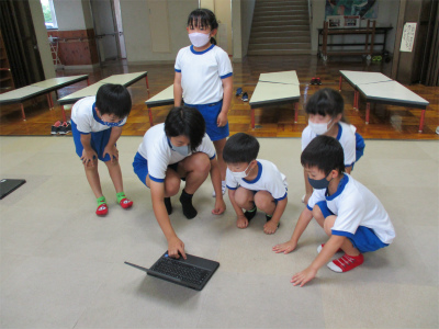 白組は、6年生が撮影した振り付け動画を見ながら練習しています。ICTを上手に使っていますね。