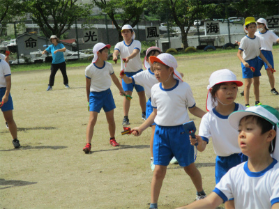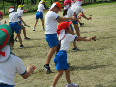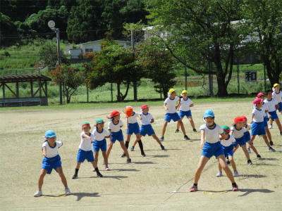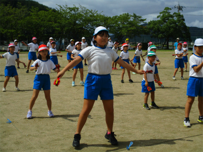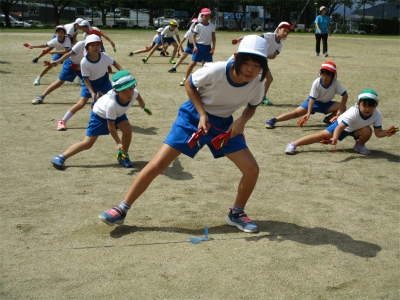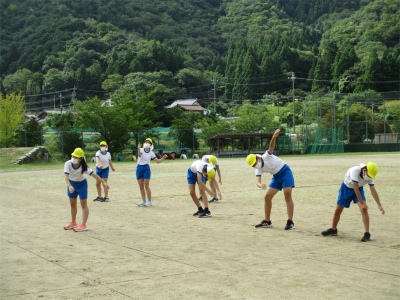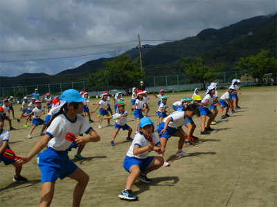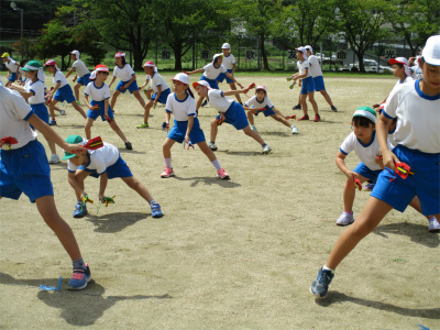 業間から3時間目の初めにかけて、「よさこい練習」をしました。今日は、入場(5年生が振り付けしてくれた)を練習し、鳴子(なるこ)を持って踊ってみました。