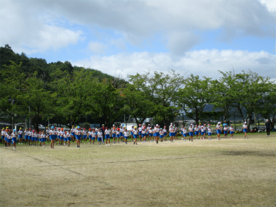 開会式の後、準備体操をします。手足をしっかりと伸ばして体操できているかな?初練習。まだまだ課題はありそうです。みんなで話し合って素敵な開閉会式にしてくださいね。