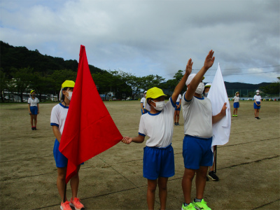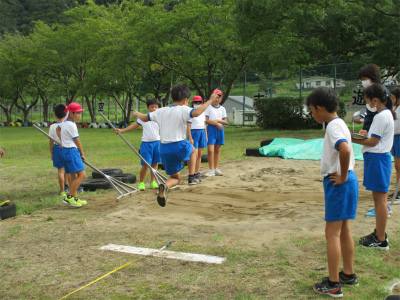 100M・走り幅跳び・ボール投げの記録を測定します。また、体育館では、5・6年生が走り高跳びの練習を始めていました。(希望者のみ)今年度は、コロナ禍の中の開催となるため、制約もあります。まずは、自分の記録更新を目指しましょう。