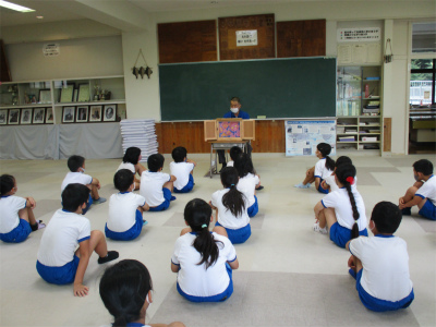 1年生は、「くまくまパン」と「にゃーご」の2冊を読んでいただきました。1年生に聞いてみると、「くまくまパン」では「あんパン」と「カレーパン」をそれぞれお薦めする2ひきのくまさんが、最後は仲良くなるそうです。