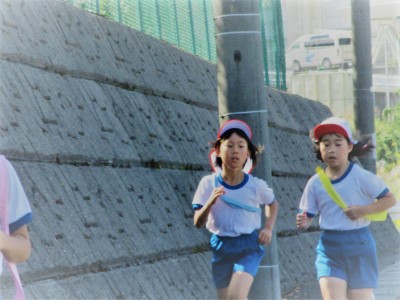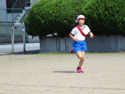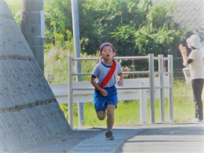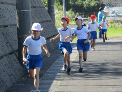 ゴール!最後まで、しっかりと走り抜きます。小さな体にいささか長い襷(たすき)のように思う子もいます。頑張れ!15日の力走にご期待ください。そして、その後、業間の時間を使って「チャレンジジョギング」がありました。さっき、走った1年2年生も走ります。とにかく、すごい!!!!!
