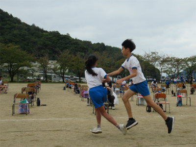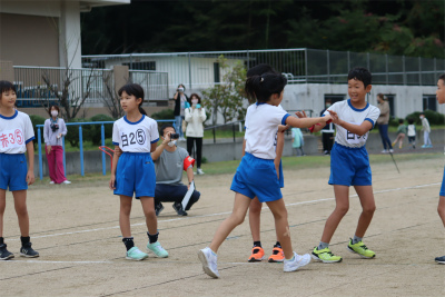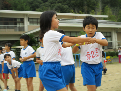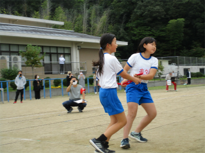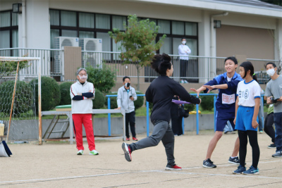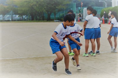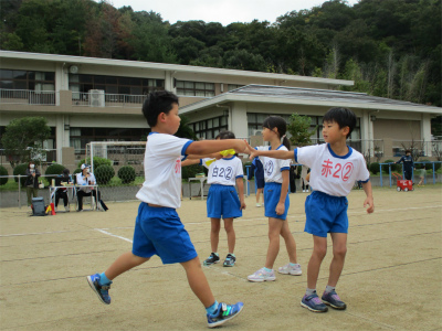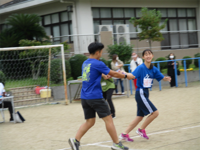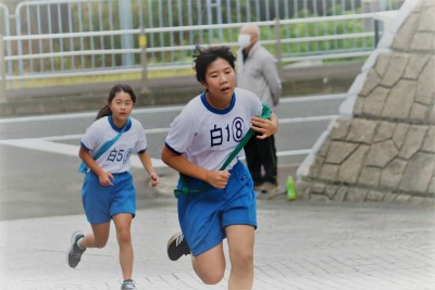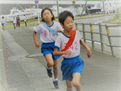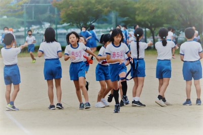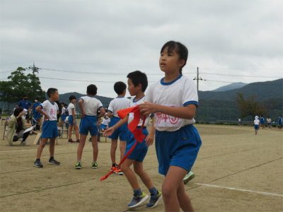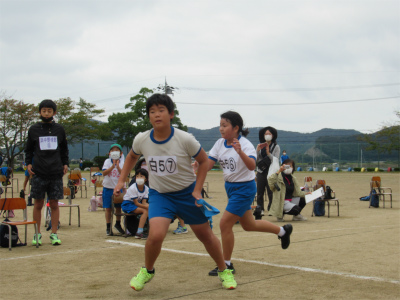 1区から2区への襷(たすき)わたしもうまくできました。2区から3区、4区と走る距離が長くなり、高学年へと移っていきます。