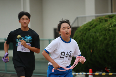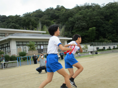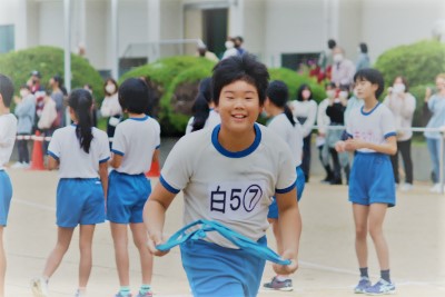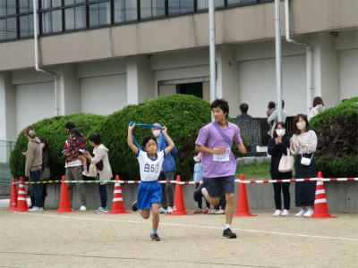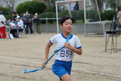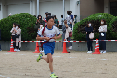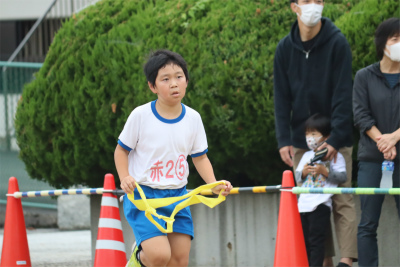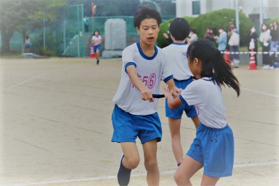 いよいよ最終ランナーへ!6年生の力走が光ります。閉会式で、「箱根駅伝を見ているようでした。」(教頭談)がありましたが、力走、いやいや爆走という走りでした。