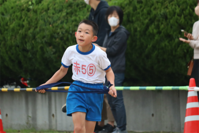 よーい、スタート!一斉に走り出しました。勢い余ってスタート直後の坂でこけてしまったお友達もいましたが、最後まで力走を見せてくれました。