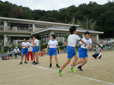 10月15日土曜日。予定していた駅伝大会が無事に終わりました。今年の駅伝は、2つの新しい試みがありました。1つ目は、一般参加枠をつくり、広く内外海地区の方々からランナーを公募したことです。2つ目は、ZOOM配信を実施したことです。1つ目は、2つの中学生チームが参加をしてくれました。「率先垂範ジャー」「浜中野球部」の2チームです。内外海小学校の卒業生や小浜中学校の先輩、そして、現6年生の昨年度までの担任の先生が参加してくれました。ZOOM配信は、多くはありませんでしたが、実際に映像で見てくださった方もいらっしゃいました。