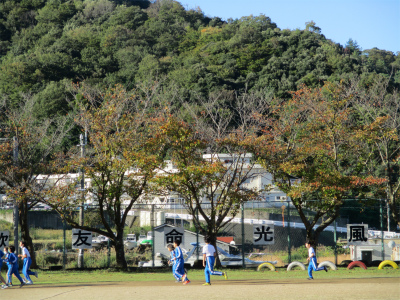 10月19日、水曜日。朝の冷え込みが厳しくなってきましたが、今日は朝から良い天気です。ということは、朝マラソンです。今日、一番早くグラウンドに出てきたのは、1年生でした。