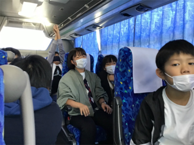 帰りのバスの中も、子どもたちは楽しく過ごしていました。疲れ知らずですね。子どもたちのこの2日間の様子を見ていて、私が出発式で話した「社会性」「積極性」「協働性(協力性でもいい)」「感謝の心」を見せてもらう場面がたくさんあったと感じました。やはり「人は人で育つ!」人と触れ合うことで多くのことを学んでくれた修学旅行であったと思います。一回りたくましくなった6年生。卒業まで5か月と少しとなりました。よろしくお願いします。