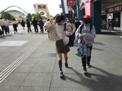 午後1時までの時間でしたが、十分に楽しめたようです。最低でも、一つは乗り物に乗れたようでホッとしました。USJの中にいると、コロナ禍ということを忘れてしまいそうです。園内で食べることは我慢しましたが、飲み物などは自由に飲んでいました。少々、暑かったです。昼食をはさんで、その後、大阪城へ向かいました。