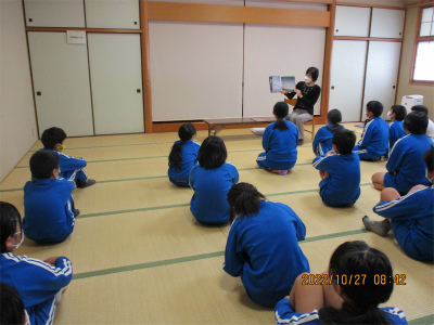 10月27日木曜日。今朝も冷え込みました。でも、冬はこれからです。まだまだ、気温は下がります。さて、今日は、読み聞かせがありました。1年生は、絵のない本当の読み聞かせでした。日本の昔話のようです。