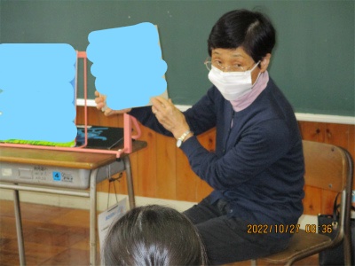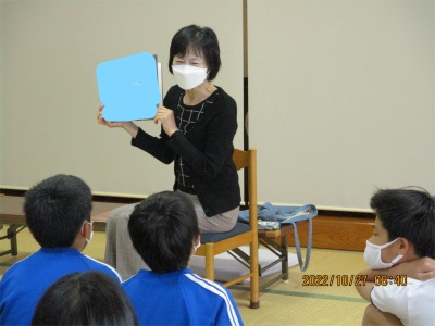 鳥の巣が緻密に書かれた絵本を見て、それぞれの巣の違いに驚いていました。5年生6年生は、ハロウィンが近いということで「がいこつのしゃっくり」の話でした。さて、しゃっくりをどのようにして止めるのか!高学年が聞いていてもおもしろかったです。