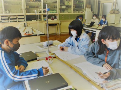 5年生は、理科の実験中でした。「振り子」の実験です。予想どおりの結果になった子がいれば、予想とは全く違った結果になった子もいたようです。