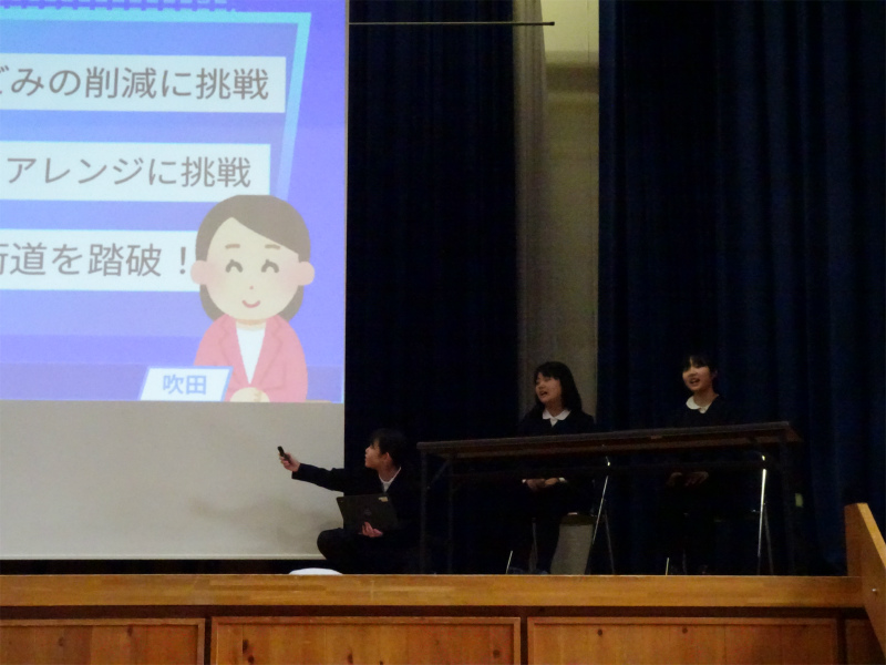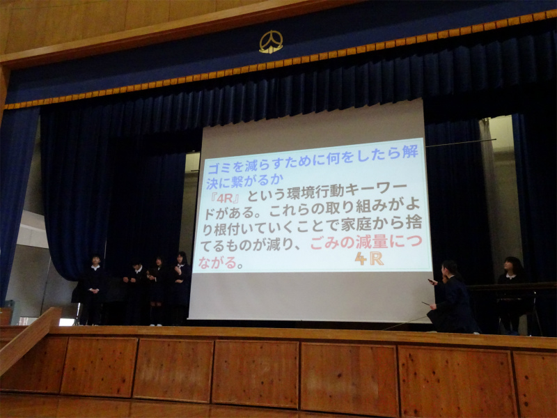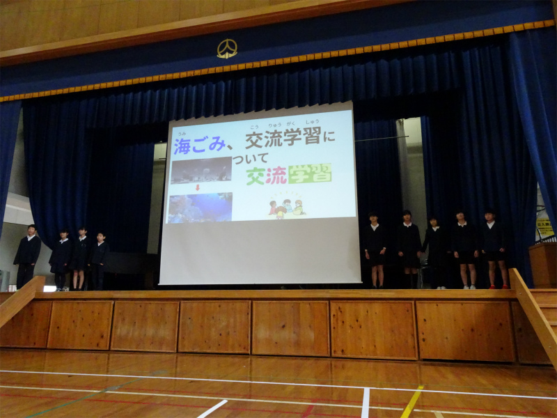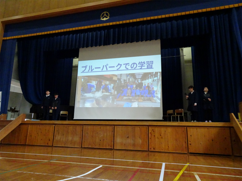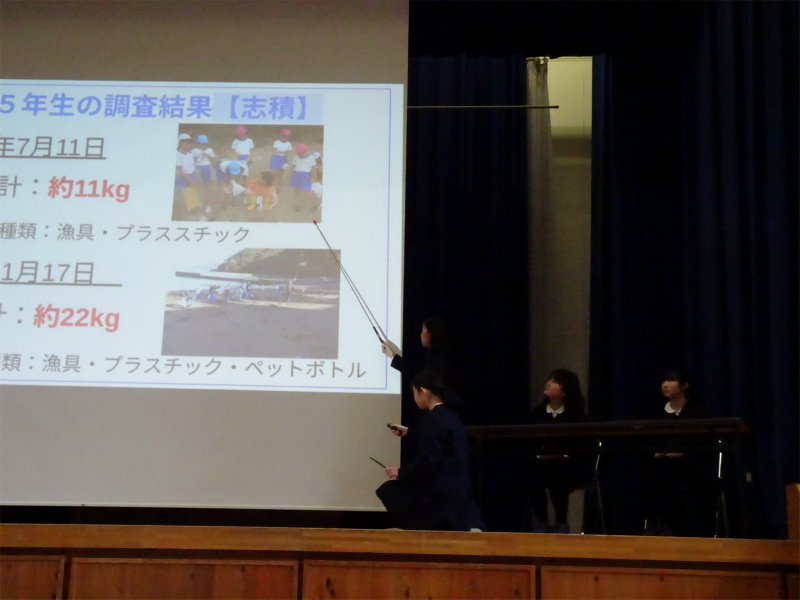 5年生の発表です。「だが、海はある」海ゴミ調査や、身近な養殖について報告しました。