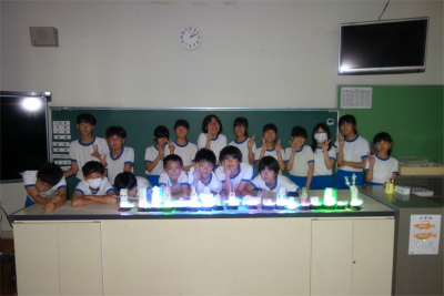 6年生は、図工で「光の形」に取り組んでいました。自分の思いに合う「光の形」を考え、自分なりの美しい光を生み出す作品づくりです。作品が完成し、鑑賞会をするとのことで、会場「理科室」に向かいました。