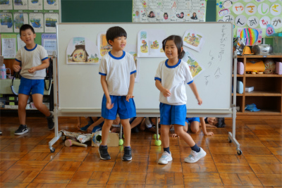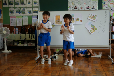 2024年7月16日 / 最終更新日時 : 2024年7月16日 おむすびころりん音読劇 1年生 先週、1年生が「おむすびころりん音読劇」の案内を持ってきてくれました。そして今日、たのしみにしていた音読劇を見せてもらいました。みんな張り切って楽しく演じています。とってもかわいらしい劇でした。 おむすびがころげました小槌を振ると お米や小判が! 音読に合わせて、自分達で動作・振り付けを考えたそうです。すごいなあ! また、小道具も自分達で作ったようです。演技もなかなかの役者ぶりでしたよ。今後が楽しみになりました!
