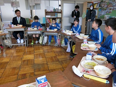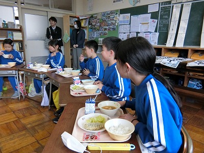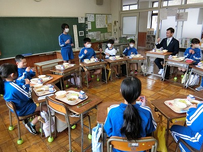 3年生と一緒に給食を食べました。来られる前からみんなワクワクでした。