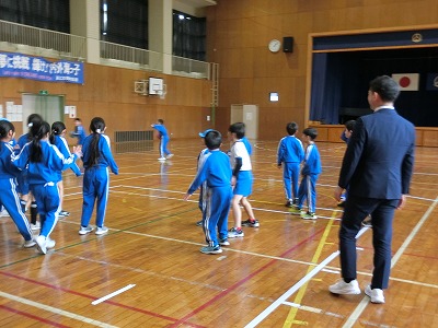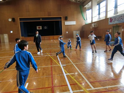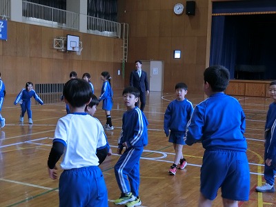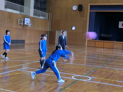 お昼休みは、体育館で低学年と一緒にドッヂボールです