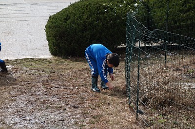 周りに雪がないので、ちょっと遠くから運んでいます