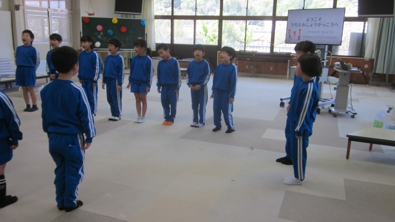 校歌や仲良しゲーム、読み聞かせなど、内容は盛りだくさんで、1年生は大喜びでした。