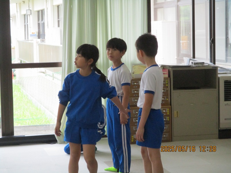 先生は、子どもたちから「CDを流してください」と言われたら操作しますが、それ以外は口出し、手出しせずに見守ります。 もちろん、子どもたちだけでできないときはサポートしていますが、「子どもたちが考えて動く時間」を大事にしているというのが担任から伝わってきました。