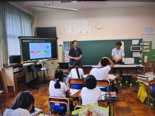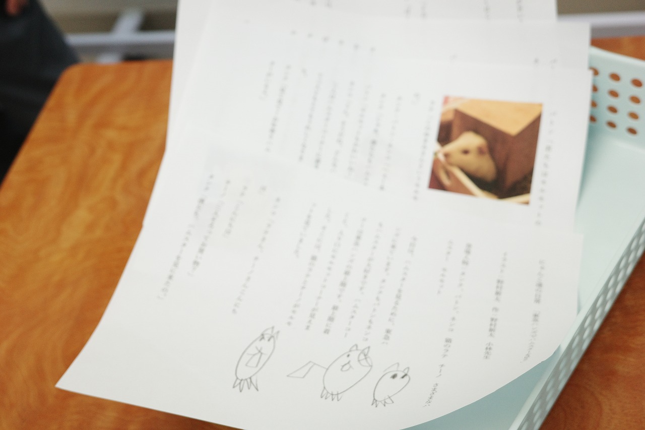 興味を引く教材や、写真も用意され、この日、大勢の参観者の中でも非常によくがんばって学習していました。授業の後半は、手作りのカルタを披露。ユニークな言葉とイラストをほめられて、笑顔がたくさん見られました。