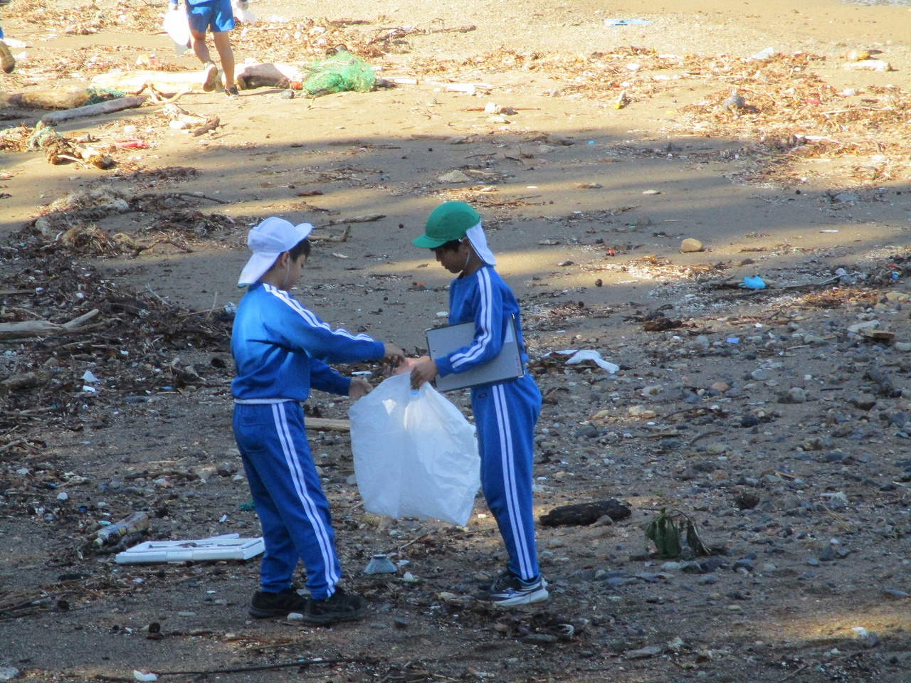 到着してから海ごみを拾い集め、分別しました。学校に持ち帰り、今後は、調査結果をまとめていきます。