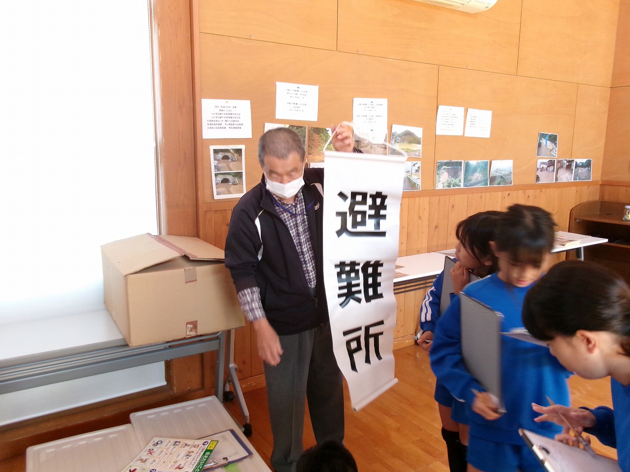 10月30日、4年生が総合の学習の一環で、地区の防災倉庫を見学させていただきました。また、コミュニティセンターに備えられている防災用品についても見せていただきました。