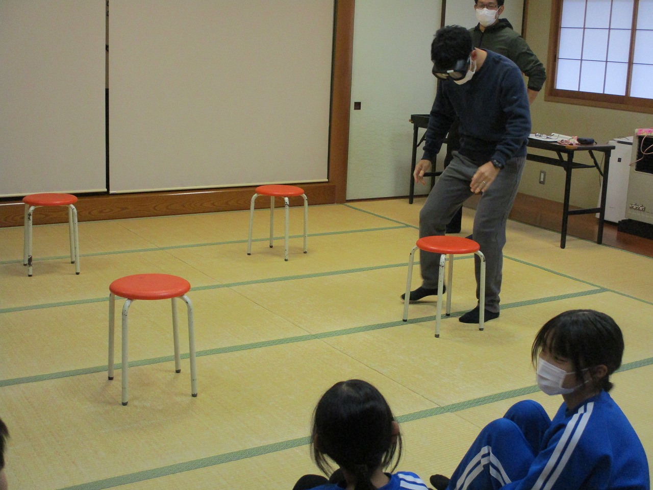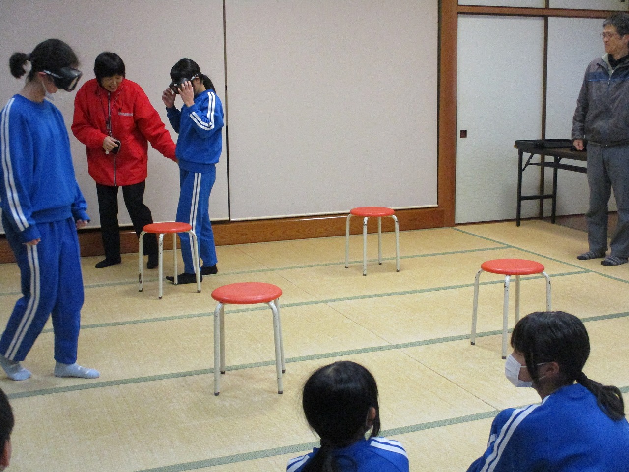 担任の先生も体験させていただきましたが、同じように(子ども以上に)よろめいていました。