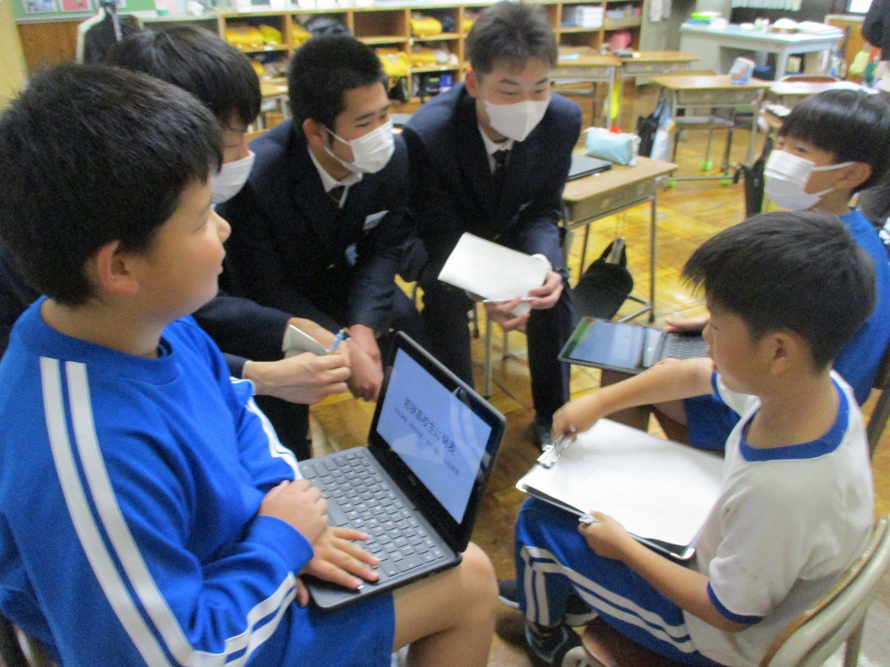 総合的な学習の時間で学んできたことを高校生に発表したり、進め方について相談し、アドバイスを受けたりしました。