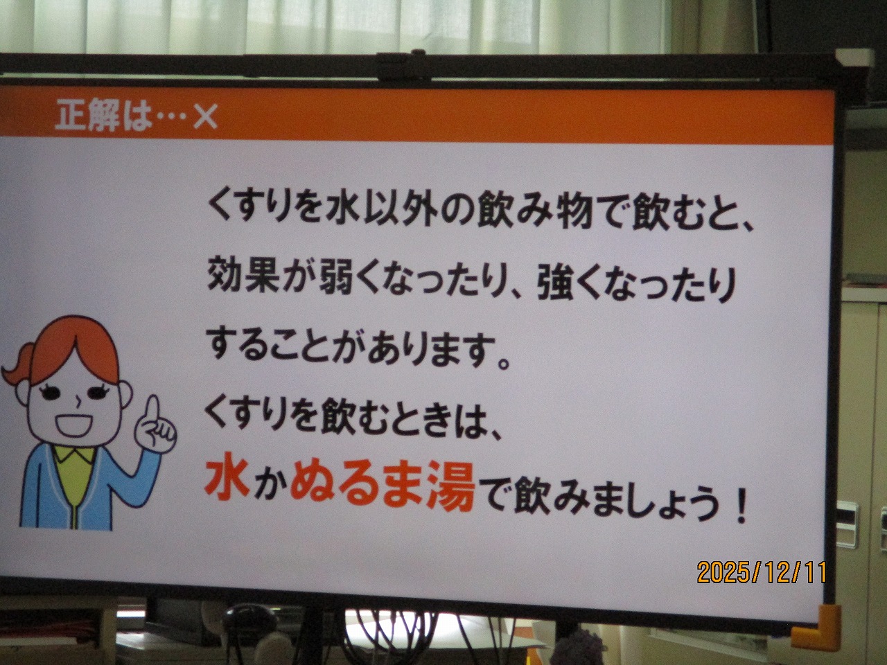 保護司、若狭健康福祉センターの方々を講師としてお迎えし、薬の服用時の留意点やオーバードーズなどについて教えていただきました。