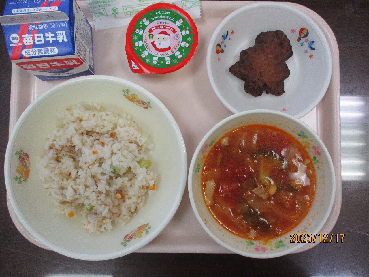 12月17日の献立はクリスマスにちなんだメニューでした。