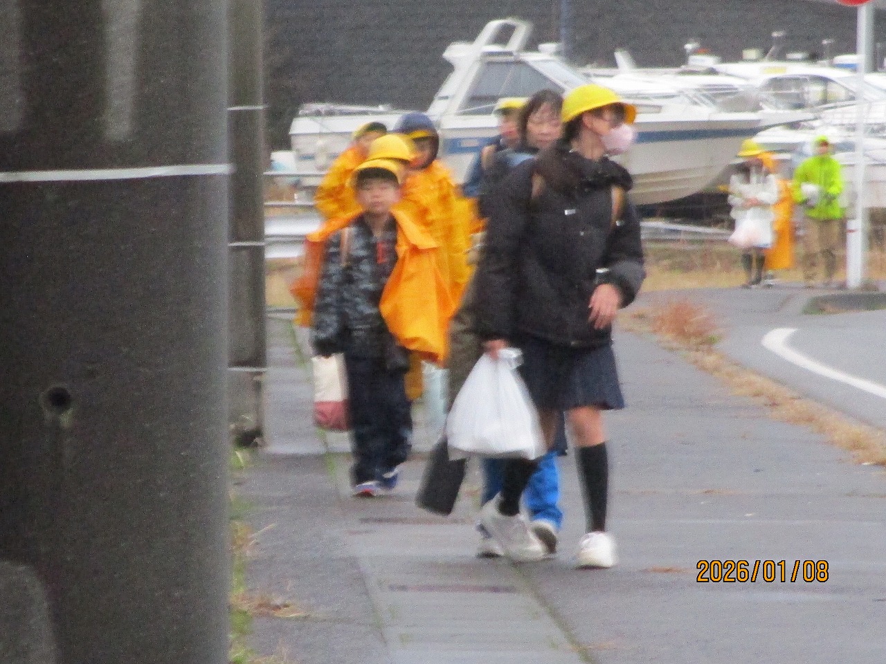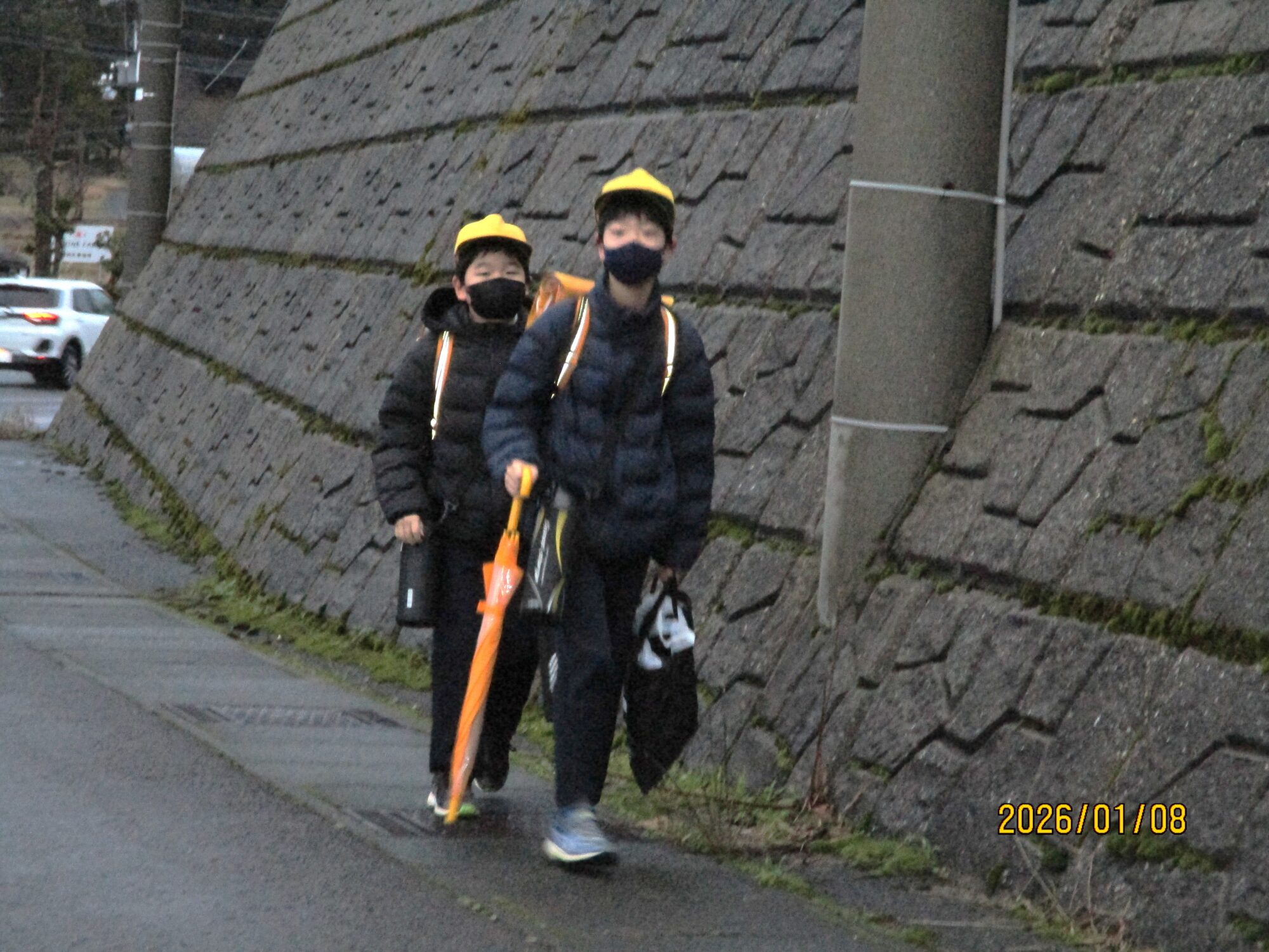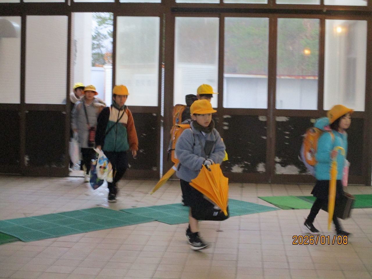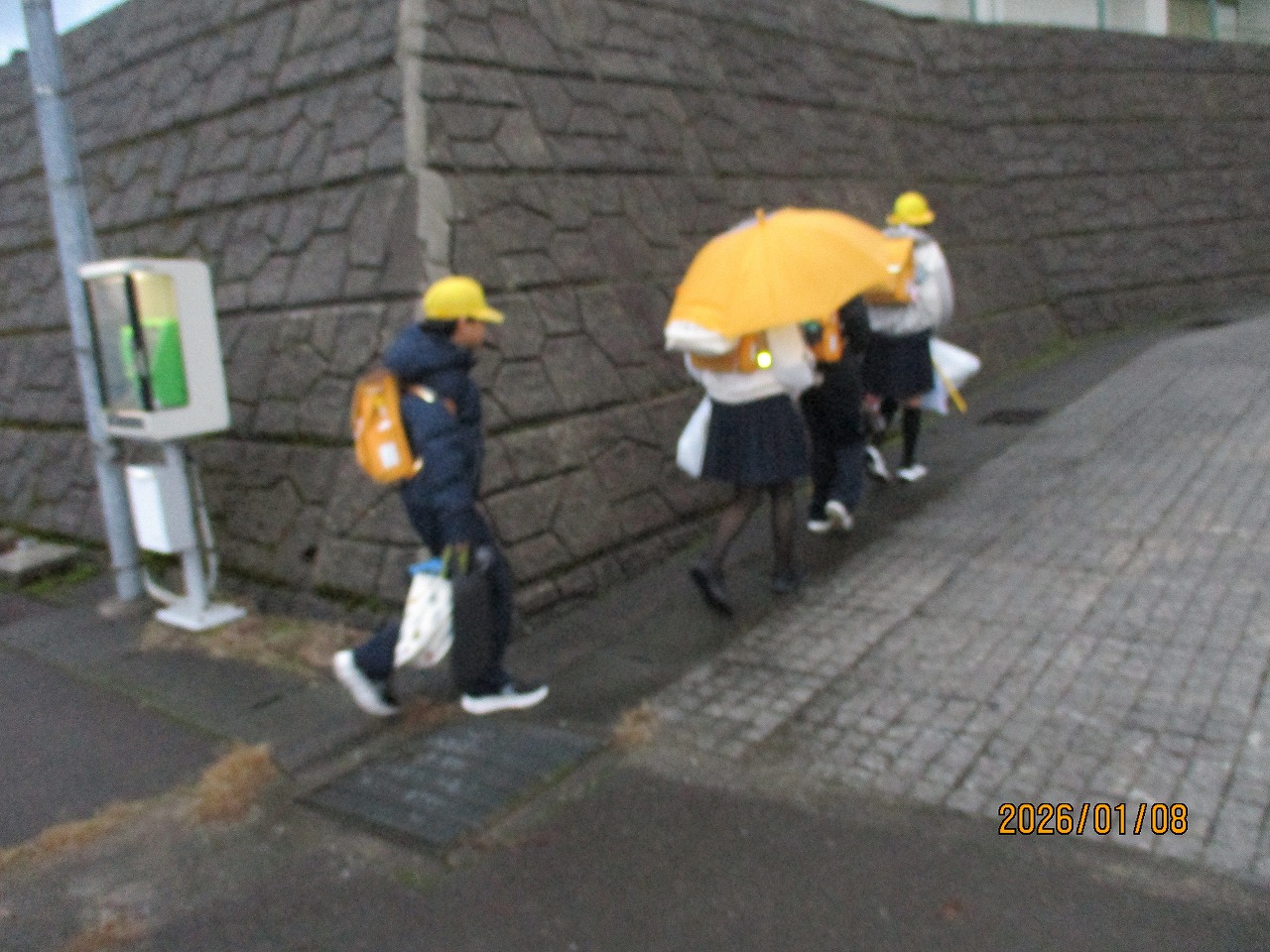 雨風、寒さをこらえながら、子どもたちが登校してきました。