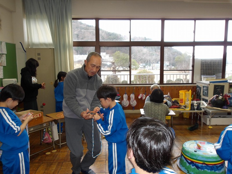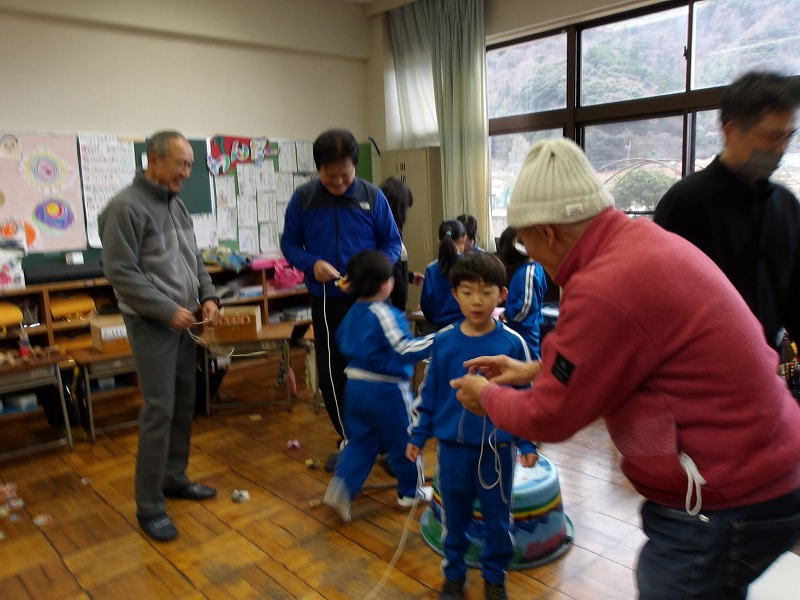 1月9日、1年生が生活科の学習で昔遊びに挑戦しました。